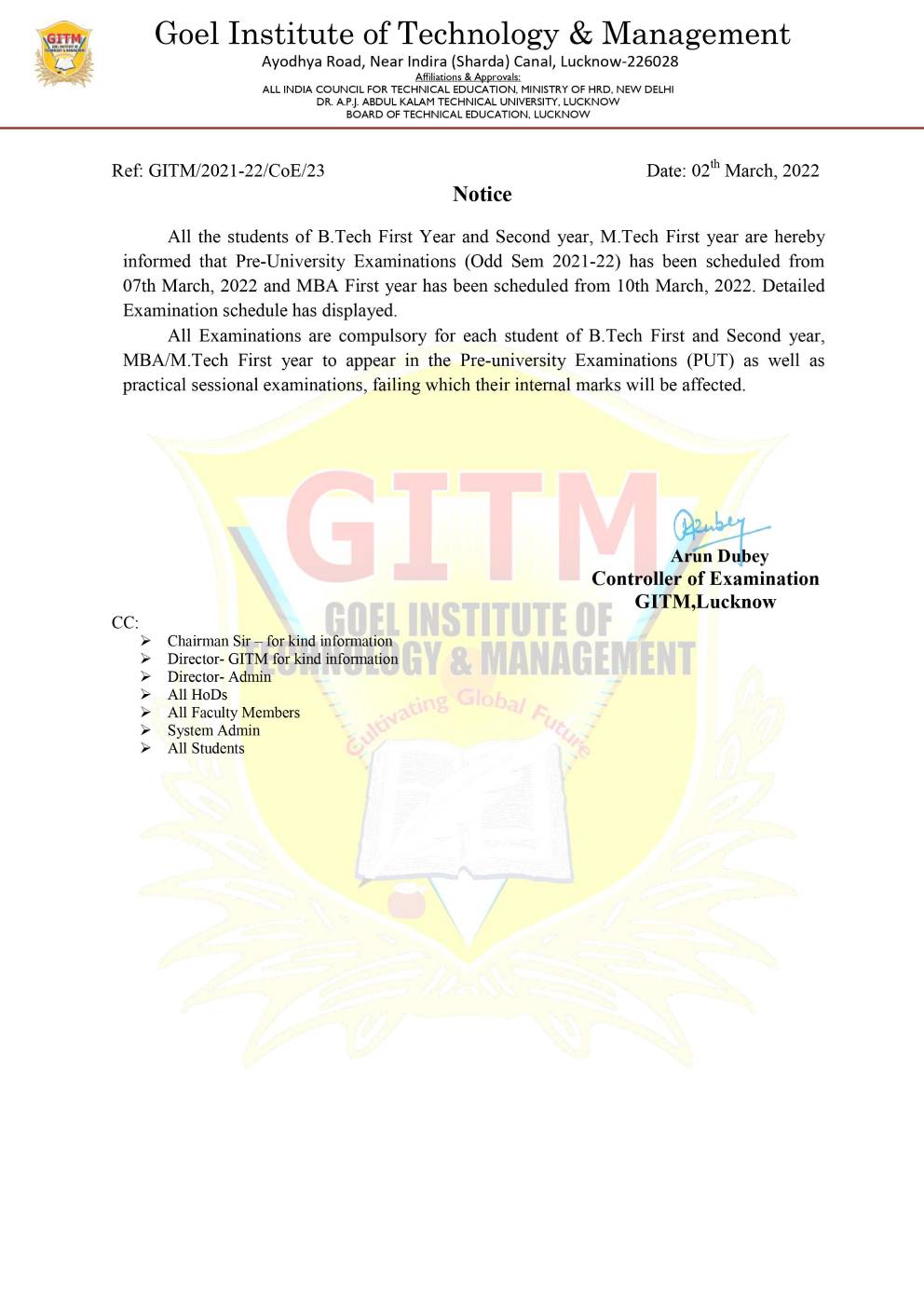 GITM Examination Department |