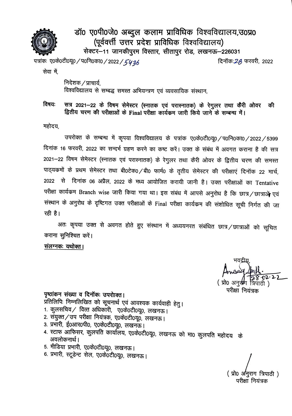 | Regarding AKTU Convocation |