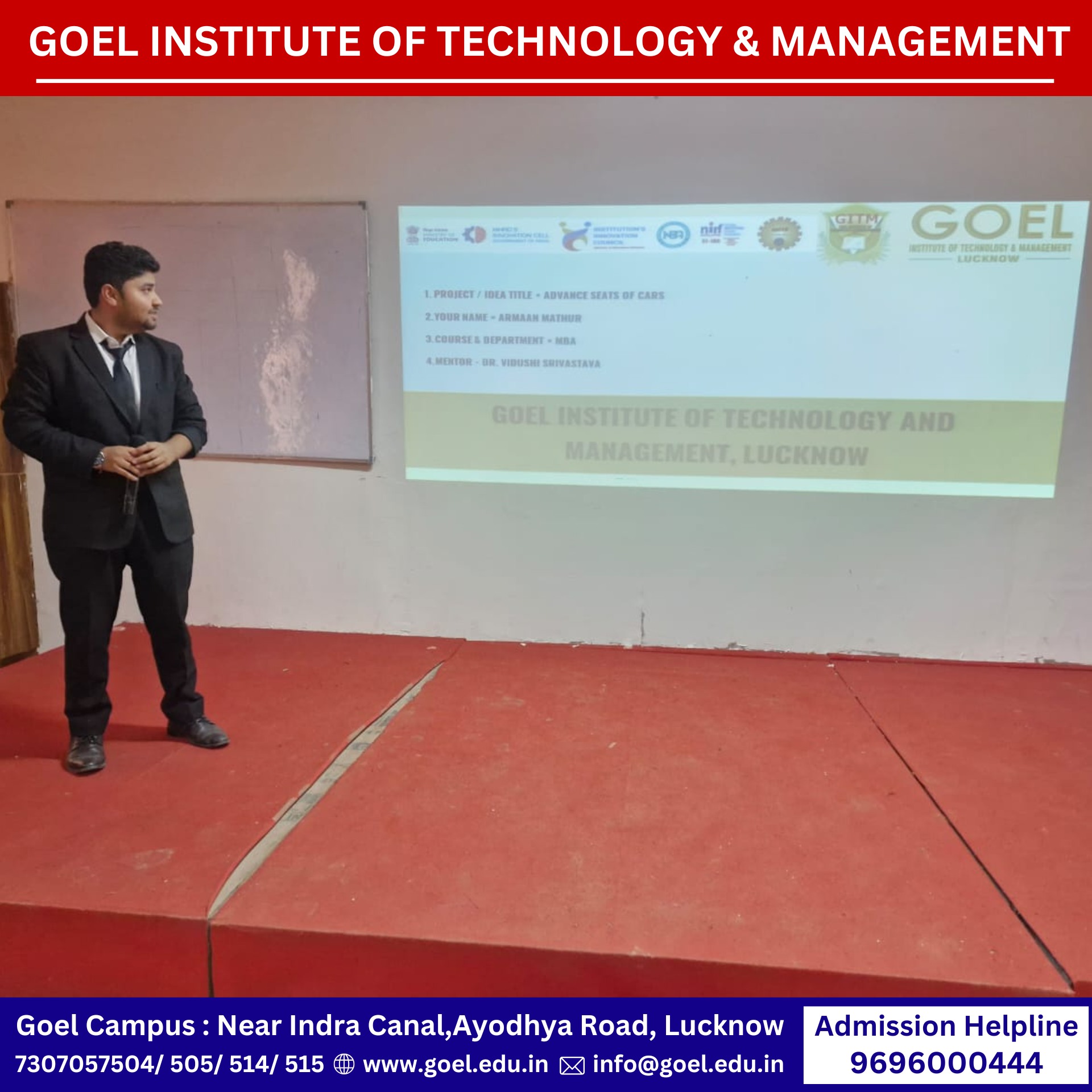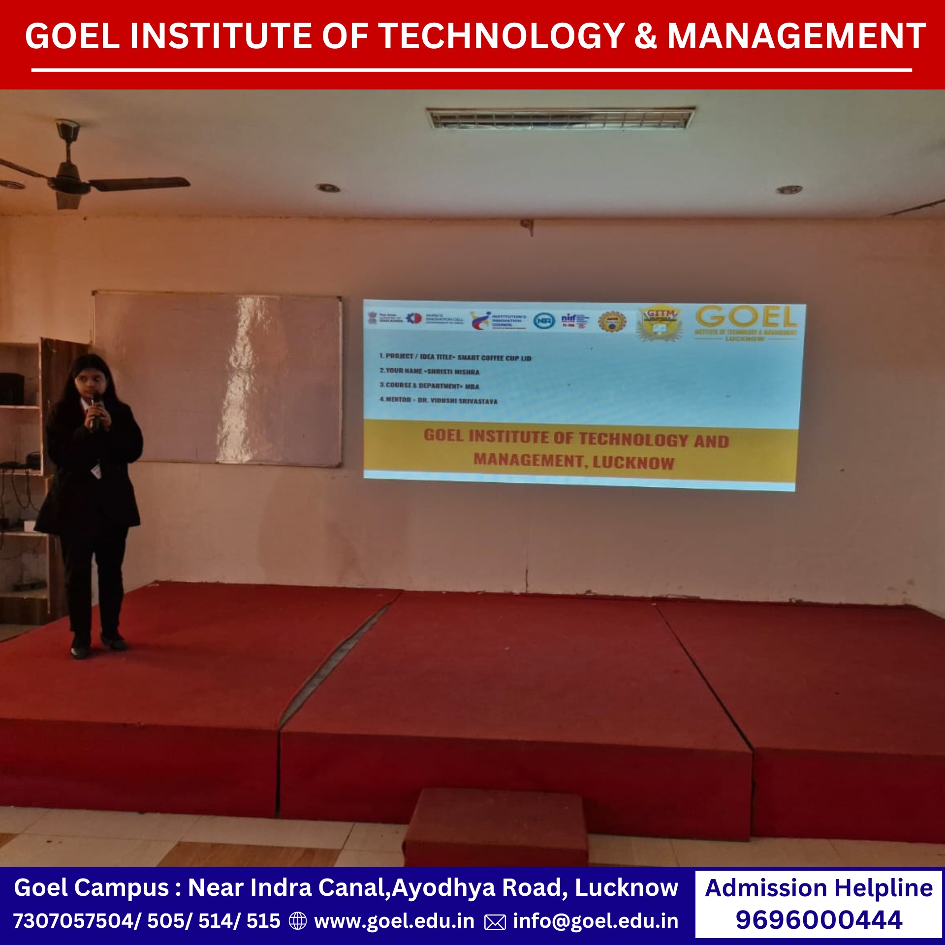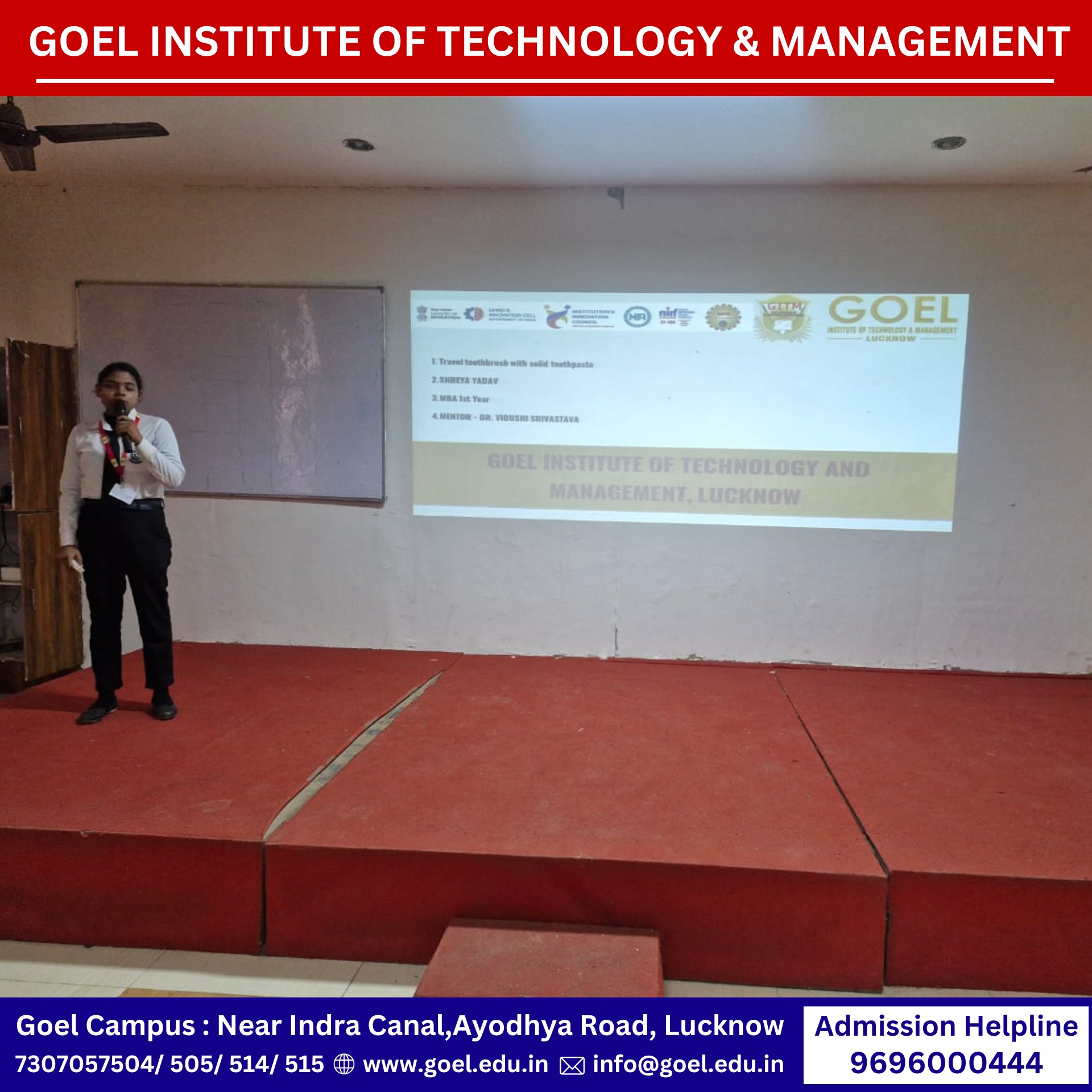 A motivational address was delivered by Dr. Jyoti Agarwal, Innovation Ambassador and Head of the MBA Department, inspiring students to identify and solve societal problems with a managerial mindset.